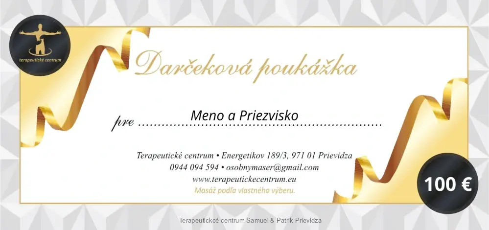 Darčeková poukážka v hodnote 100€ na ľubovoľnú terapiu.